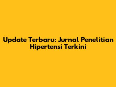 Update Terbaru: Jurnal Penelitian Hipertensi Terkini