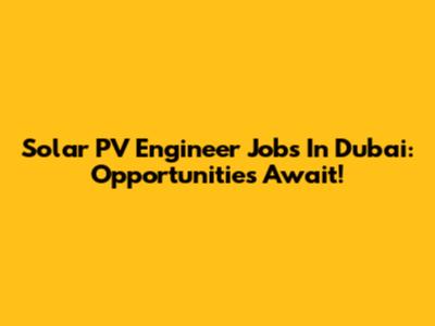 Solar PV Engineer Jobs In Dubai: Opportunities Await!