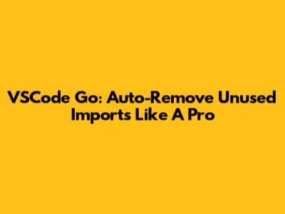 VSCode Go: Auto-Remove Unused Imports Like A Pro