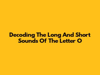 Decoding The Long And Short Sounds Of The Letter O