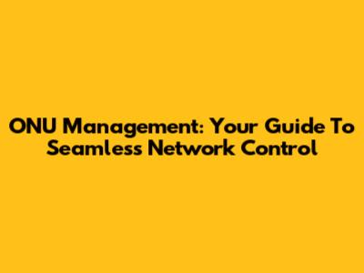 ONU Management: Your Guide To Seamless Network Control