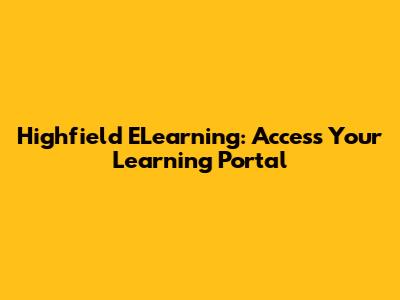 Highfield ELearning: Access Your Learning Portal