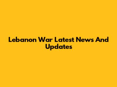 Lebanon War Latest News And Updates