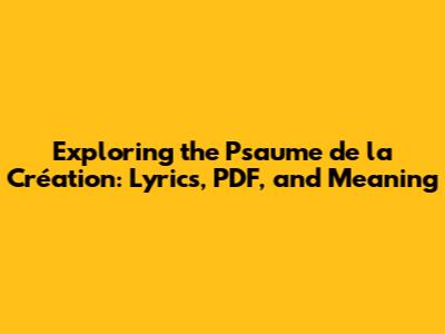 Finding the Lyrics: Your Guide to the Psaume de la Création PDF
