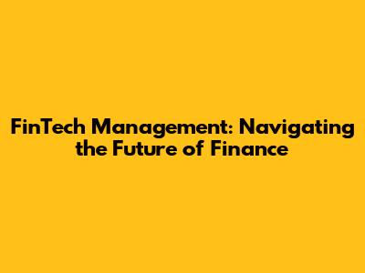 Future Trends in FinTech Management