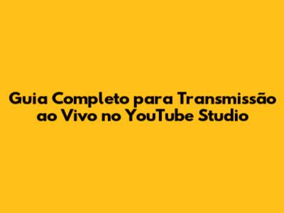 Guia Completo Para Transmissão Ao Vivo No YouTube Studio