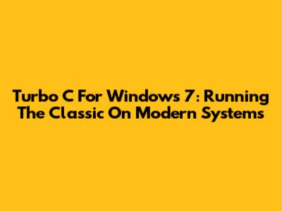 Turbo C For Windows 7: Running The Classic On Modern Systems