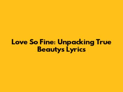 Love So Fine: Unpacking True Beauty's Lyrics
