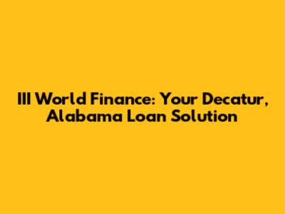 III World Finance: Your Decatur, Alabama Loan Solution
