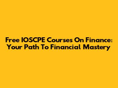 Free IOSCPE Courses On Finance: Your Path To Financial Mastery