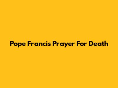 Pope Francis' Prayer For Death
