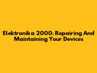 Elektronika 2000: Repairing And Maintaining Your Devices