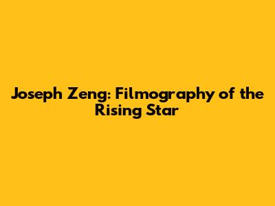 Joseph Zeng: Filmography Of The Rising Star