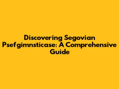 Discovering Segovian Psefgimnsticase: A Comprehensive Guide