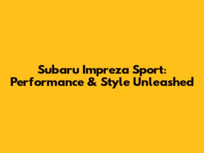 Subaru Impreza Sport: Performance & Style Unleashed