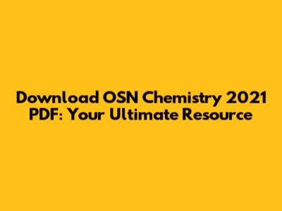 Download OSN Chemistry 2021 PDF: Your Ultimate Resource