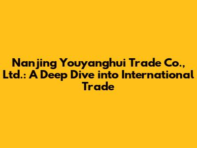Hey guys! Let's talk about Nanjing Youyanghui Trade Co., Ltd., a company that's making waves in the world of international commerce. If you're curious about this company, you've come to the right place. We'll be diving deep into what makes them tick, their role in the global market, and why they might be a name to watch. Buckle up, because we're about to explore the ins and outs of this dynamic player in the world of trade!