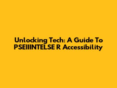 Unlocking Tech: A Guide To PSEIIINTELSE R Accessibility