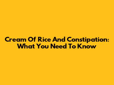 Cream Of Rice And Constipation: What You Need To Know