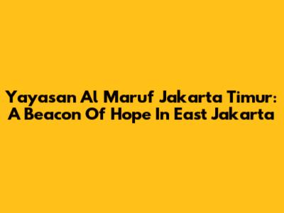 Yayasan Al Ma'ruf Jakarta Timur: A Beacon Of Hope In East Jakarta