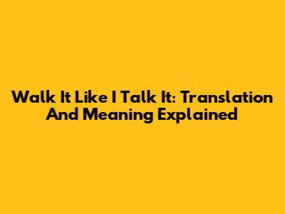 Walk It Like I Talk It: Translation And Meaning Explained