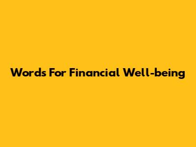Words For Financial Well-being