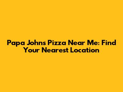 Papa John's Pizza Near Me: Find Your Nearest Location