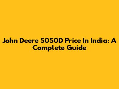 John Deere 5050D Price In India: A Complete Guide