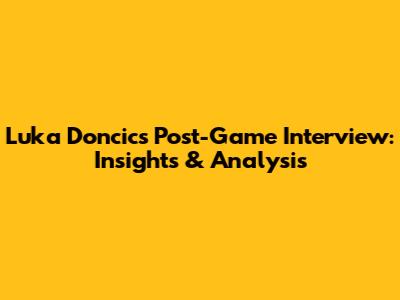 Luka Doncic's Post-Game Interview: Insights & Analysis