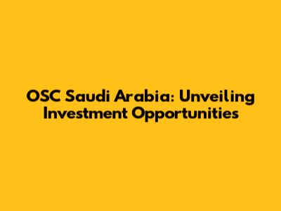 OSC Saudi Arabia: Unveiling Investment Opportunities