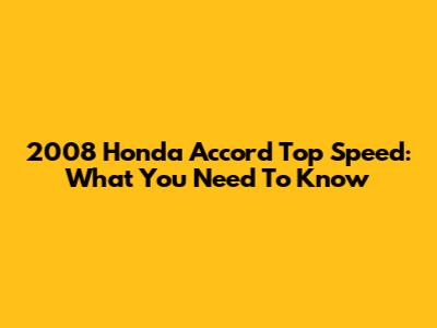 2008 Honda Accord Top Speed: What You Need To Know