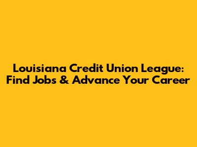 Louisiana Credit Union League: Find Jobs & Advance Your Career