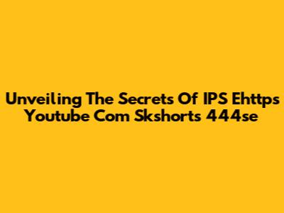 Unveiling The Secrets Of IPS Ehttps Youtube Com Skshorts 444se