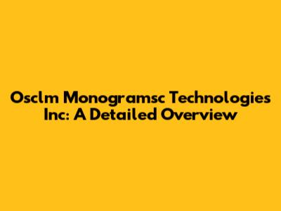 Osclm Monogramsc Technologies Inc: A Detailed Overview