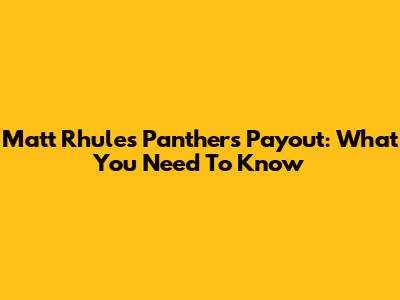 Matt Rhule's Panthers Payout: What You Need To Know