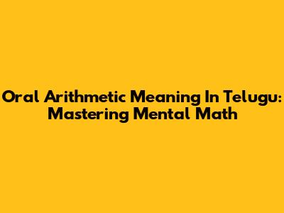 Oral Arithmetic Meaning In Telugu: Mastering Mental Math