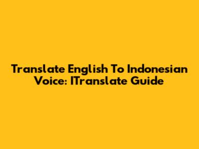 Translate English To Indonesian Voice: ITranslate Guide