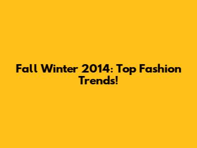Fall Winter 2014: Top Fashion Trends!