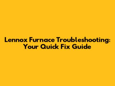 Lennox Furnace Troubleshooting: Your Quick Fix Guide