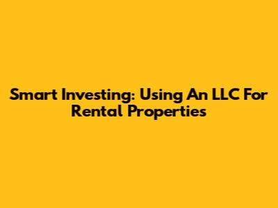 Smart Investing: Using An LLC For Rental Properties