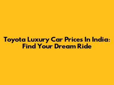Toyota Luxury Car Prices In India: Find Your Dream Ride