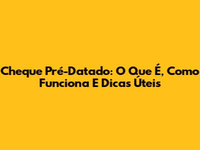 Cheque Pré-Datado: O Que É, Como Funciona E Dicas Úteis
