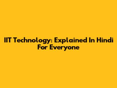 IIT Technology: Explained In Hindi For Everyone