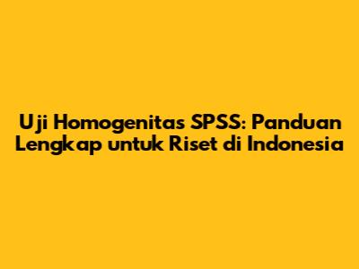 Hey guys! Pernah denger tentang uji homogenitas? Atau lagi pusing karena data penelitianmu harus diuji homogenitasnya? Tenang, di artikel ini, kita bakal bahas tuntas tentang uji homogenitas khususnya dengan menggunakan SPSS, yang pastinya relevan banget buat kalian yang lagi riset di Indonesia. Yuk, simak baik-baik!