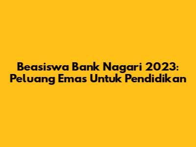 Beasiswa Bank Nagari 2023: Peluang Emas Untuk Pendidikan