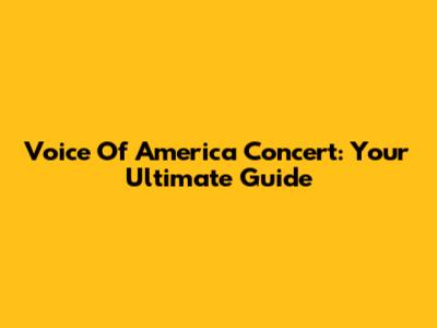 Voice Of America Concert: Your Ultimate Guide