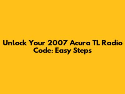 Unlock Your 2007 Acura TL Radio Code: Easy Steps