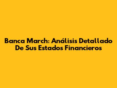 Banca March: Análisis Detallado De Sus Estados Financieros