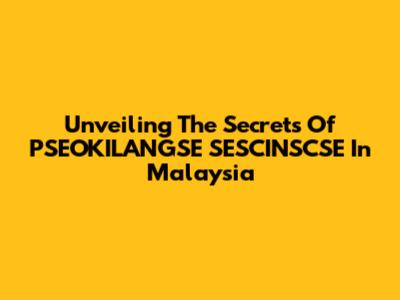 Unveiling The Secrets Of PSEOKILANGSE SESCINSCSE In Malaysia