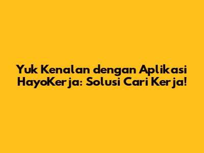 Hey guys! Pernah gak sih kalian merasa stuck dan kesulitan banget buat cari kerja? Atau mungkin kalian lagi pengen banget upgrade karir tapi bingung mulai dari mana? Nah, pas banget nih! Kali ini kita bakal ngobrolin tentang sebuah aplikasi keren yang bisa jadi solusi buat kalian para pencari kerja dan juga yang pengen mengembangkan karir. Aplikasi ini namanya HayoKerja, dan dijamin deh, setelah kenalan sama aplikasi ini, urusan cari kerja jadi lebih mudah dan menyenangkan!